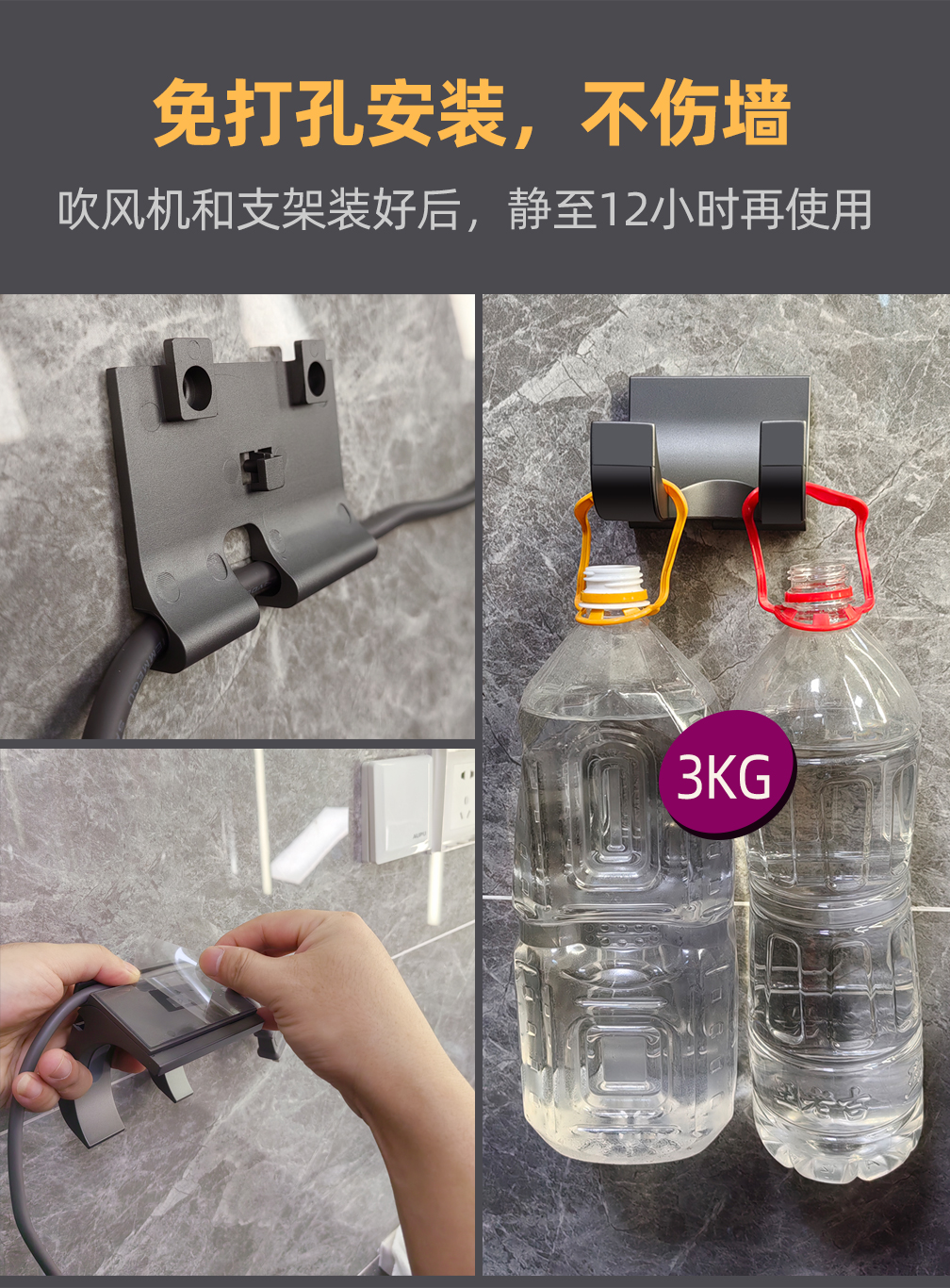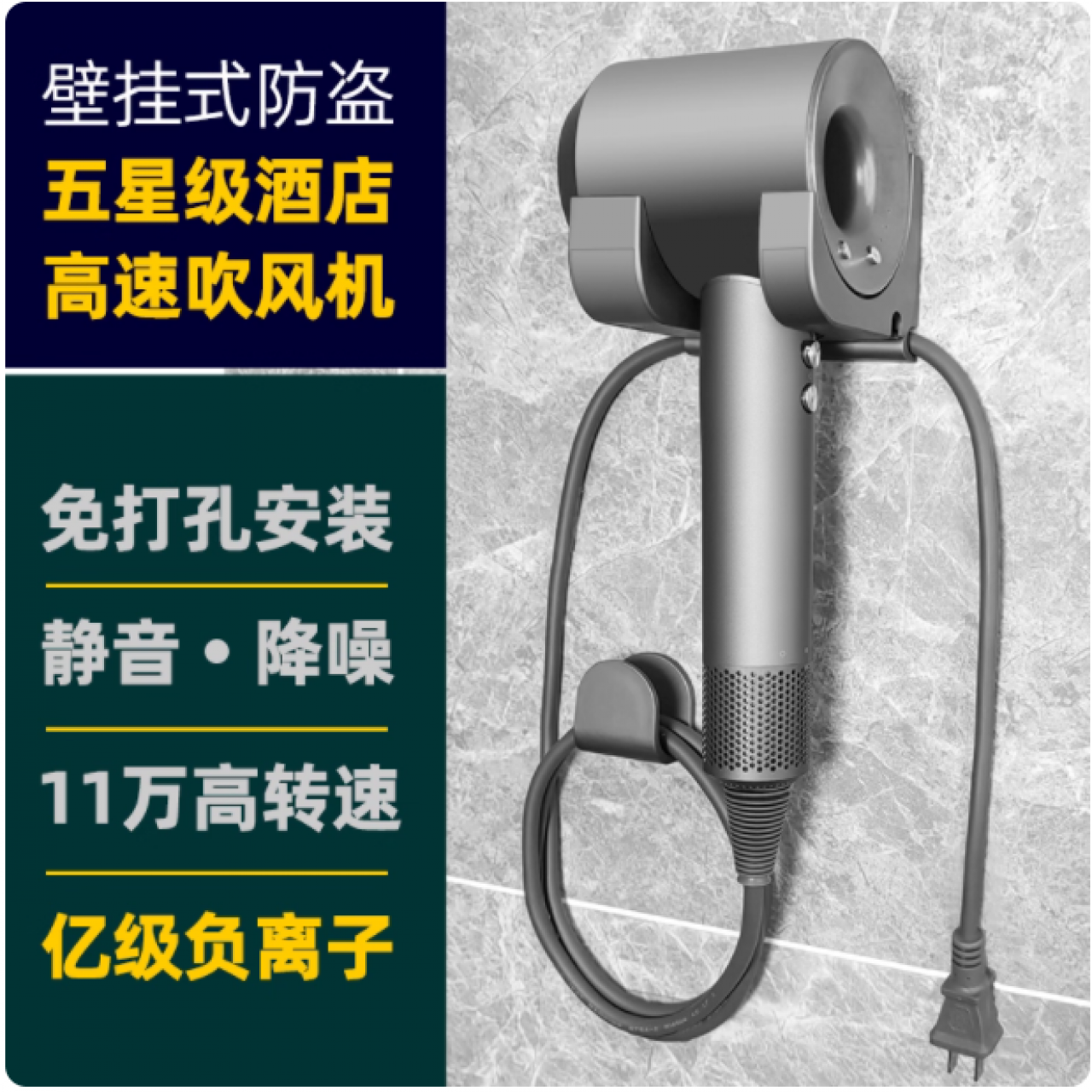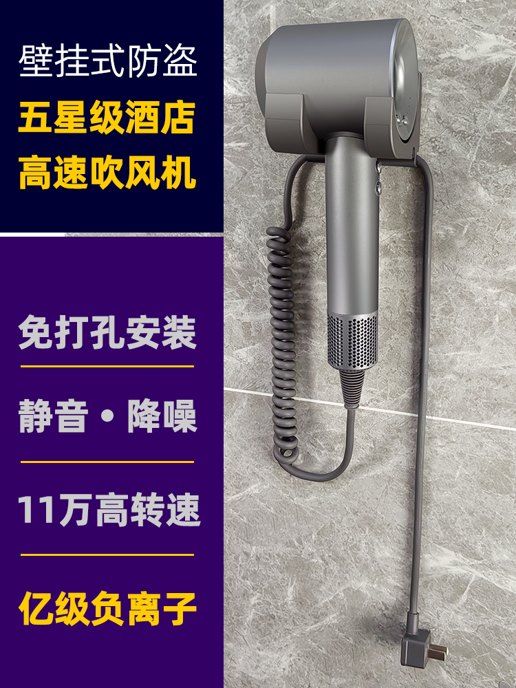 酒店宾馆吹风机壁挂式防盗支架电吹风民宿客房专用吹风筒护发静音 灰底直绳静音+防盗支架 1个装