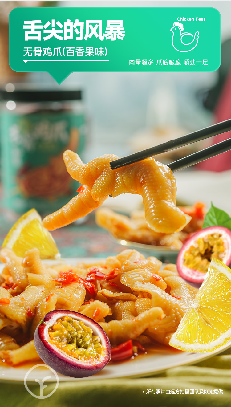 去骨鸡爪百香果味】去骨留筋配料健康开袋即食独立灌装加内袋 用水果增加鸡爪口感,好吃不腻,口味丰富健康